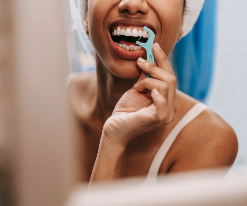 ✔️ Dùng chỉ nha khoa hoặc tăm nước: