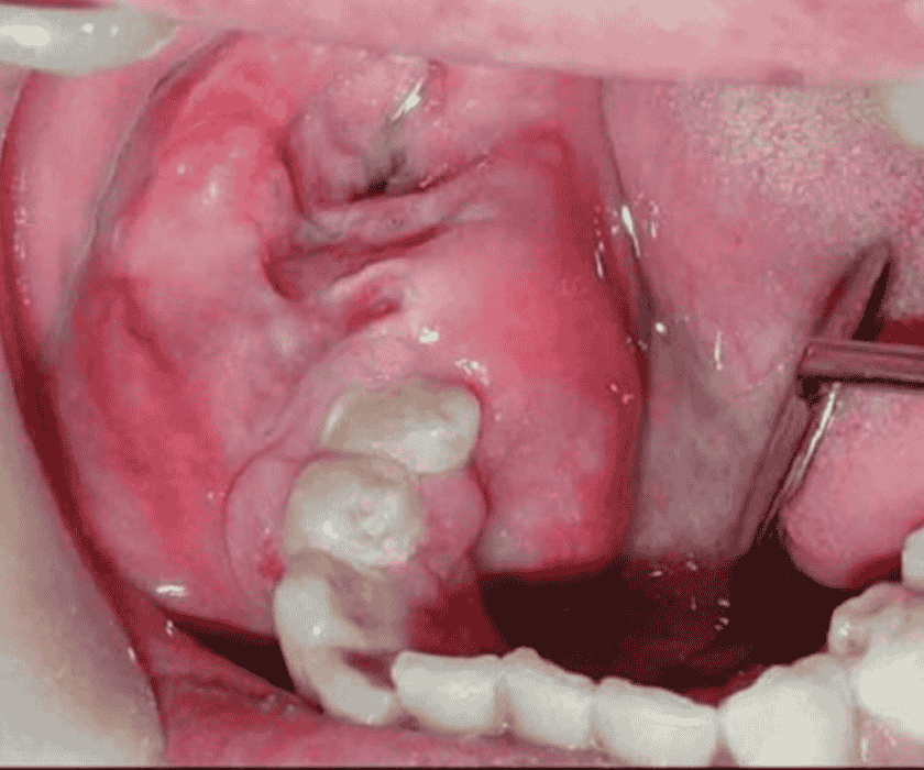 • Túi dịch này sẽ lớn dần lên theo thời gian, chèn ép lên xương hàm và các cấu trúc xung quanh, bao gồm cả chân răng của răng số 7 và dây thần kinh.