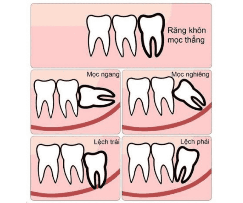 • Khi răng khôn không thể mọc lên được do thiếu không gian, nó sẽ nằm lại dưới nướu và xương hàm.
