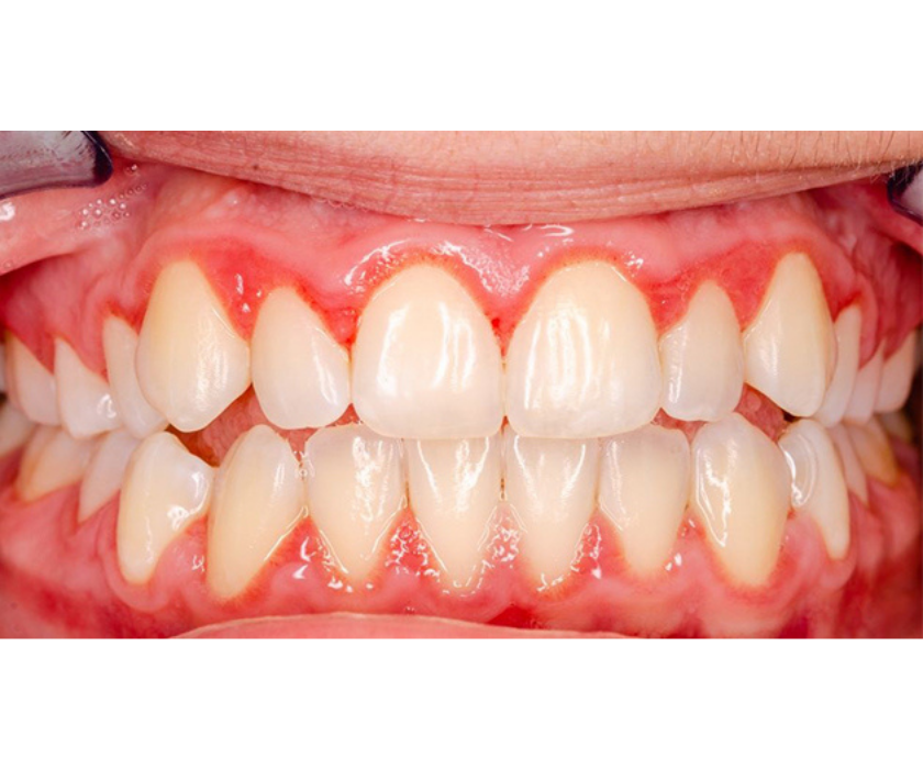 - Viêm lợi phì đại, nướu phát triển quá mức che phủ răng.