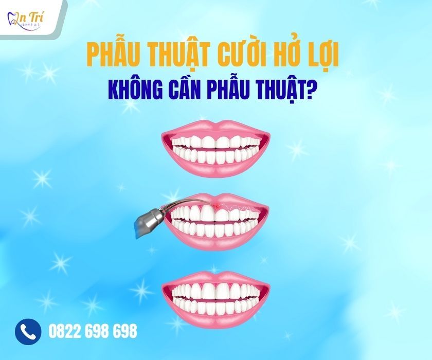 Cười hở lợi có chữa được không? Khám phá các phương pháp điều trị cười hở lợi không phẫu thuật như Botox, niềng răng và các giải pháp can thiệp tối thiểu như cắt lợi bằng laser tại Nha khoa An Trí.