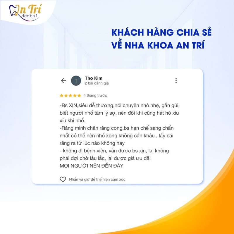 Mức giá này đã bao gồm các bước cần thiết như thăm khám, X-quang, tư vấn điều trị và công nghệ nhổ răng không sang chấn. Đây cũng là lý do nhiều người tìm kiếm thông tin về nhổ răng khôn giá bao nhiêu tiền đã lựa chọn An Trí làm nơi điều trị.