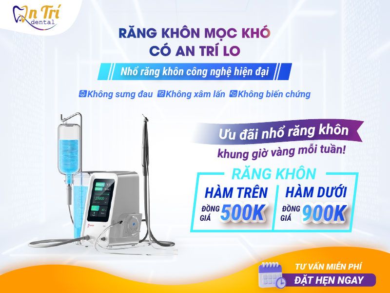 Hãy đặt lịch ngay hôm nay để được thăm khám miễn phí, nhận tư vấn chi tiết và hưởng mức ưu đãi nhổ răng khôn trong khung giờ vàng. Chỉ một lần đến Nha khoa An Trí, bạn sẽ tạm biệt nỗi đau răng khôn an toàn, nhanh chóng và tiết kiệm chi phí.