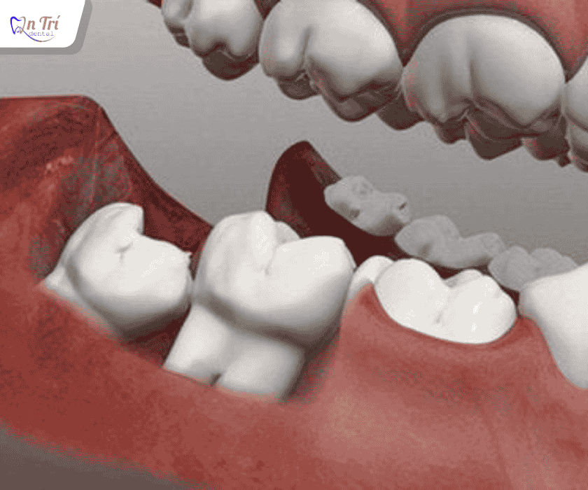 Đây là biến chứng nguy hiểm nhất. Răng khôn mọc lệch thường đâm vào mặt sau của răng số 7 (răng hàm lớn thứ hai), gây tiêu một phần thân răng số 7 và tạo kẽ hở cho vi khuẩn xâm nhập, dẫn đến sâu răng số 7. Nếu không nhổ răng khôn kịp thời, răng số 7 khỏe mạnh có thể bị hỏng vĩnh viễn, phải nhổ bỏ theo.