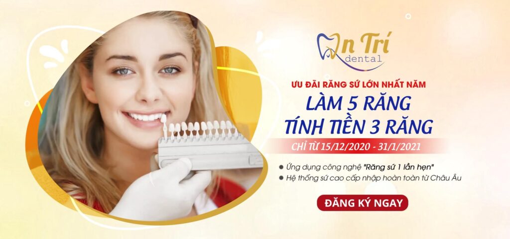 Từ ngày 15/12/2020 đến hết ngày 31/1/2021 sẽ diễn ra chương trình ưu đãi làm 5 răng sứ cao cấp với chi phí của 3 răng tại Nha khoa An Trí.