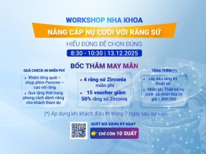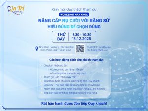 Vào 8:30-10:30, Thứ 7, ngày 13/12/2025, Nha khoa An Trí ẽ tổ chức ự kiện Work hop...